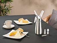 Schäumen Sie jetzt Sahne, Cremes & Soßen einfach auf. Mit 3 Tüllen verzieren Sie Kuchen und Torten. Aus Aluminium. 250 ml.