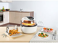 Préparez des plats sans graisse : Que ce soit des frites parfaites, des quartiers de pommes de terre, des ailes de poulet croustillantes, des légumes rôtis à la vapeur, des cuisses de poulet ou le rôti du dimanche : tout est prêt en un rien de temps dans le four à convection, sans perdre de saveur.Une méthode de cuisson saine : Une lampe halogène chauffe le four en un clin d'œil et avec un temps de préchauffage minimal à la température souhaitée. Le ventilateur répartit uniformément l'air chaud dans la chambre de cuisson.